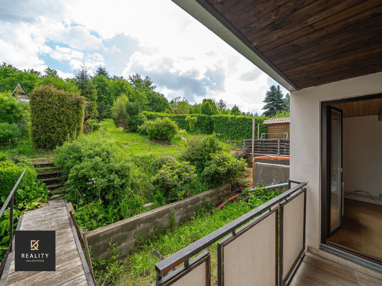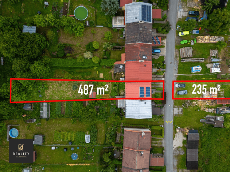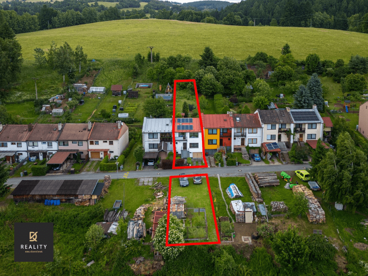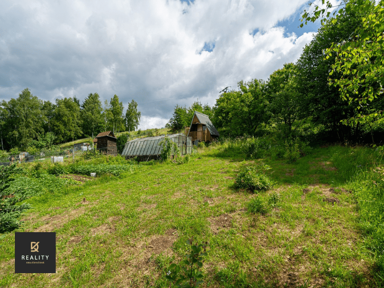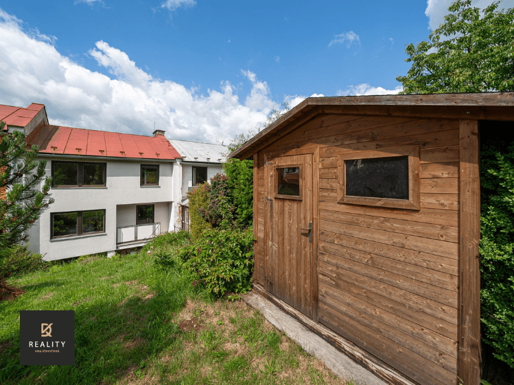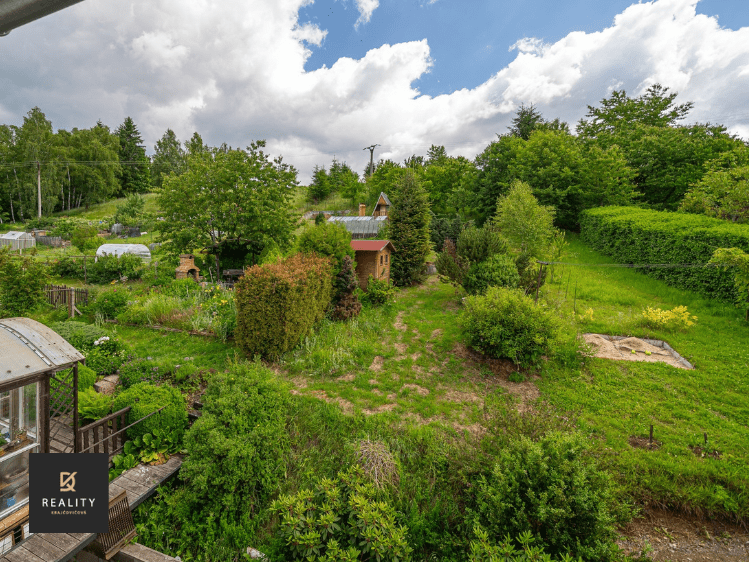 Za domem pak najdete zahrádku na které je umístěn dřevěný zahradní domek, který mohou v létě využít např. vaše děti. Před domem je také pozemek, který je využíván na skladování dřeva. a parkování.